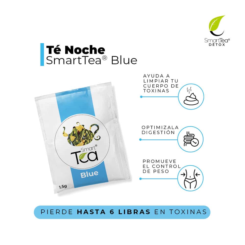 ¿Pesadez nocturna? Smart Tea Blue Detox es la mezcla deliciosa sabor a piña que desintoxica tu cuerpo y regula tu tránsito naturalmente. Recupera tu ligereza con Smart Tea Blue Detox. Exclusiva fórmula nocturna con pitahaya y ciruela favorece tu bienestar digestivo mientras duermes.